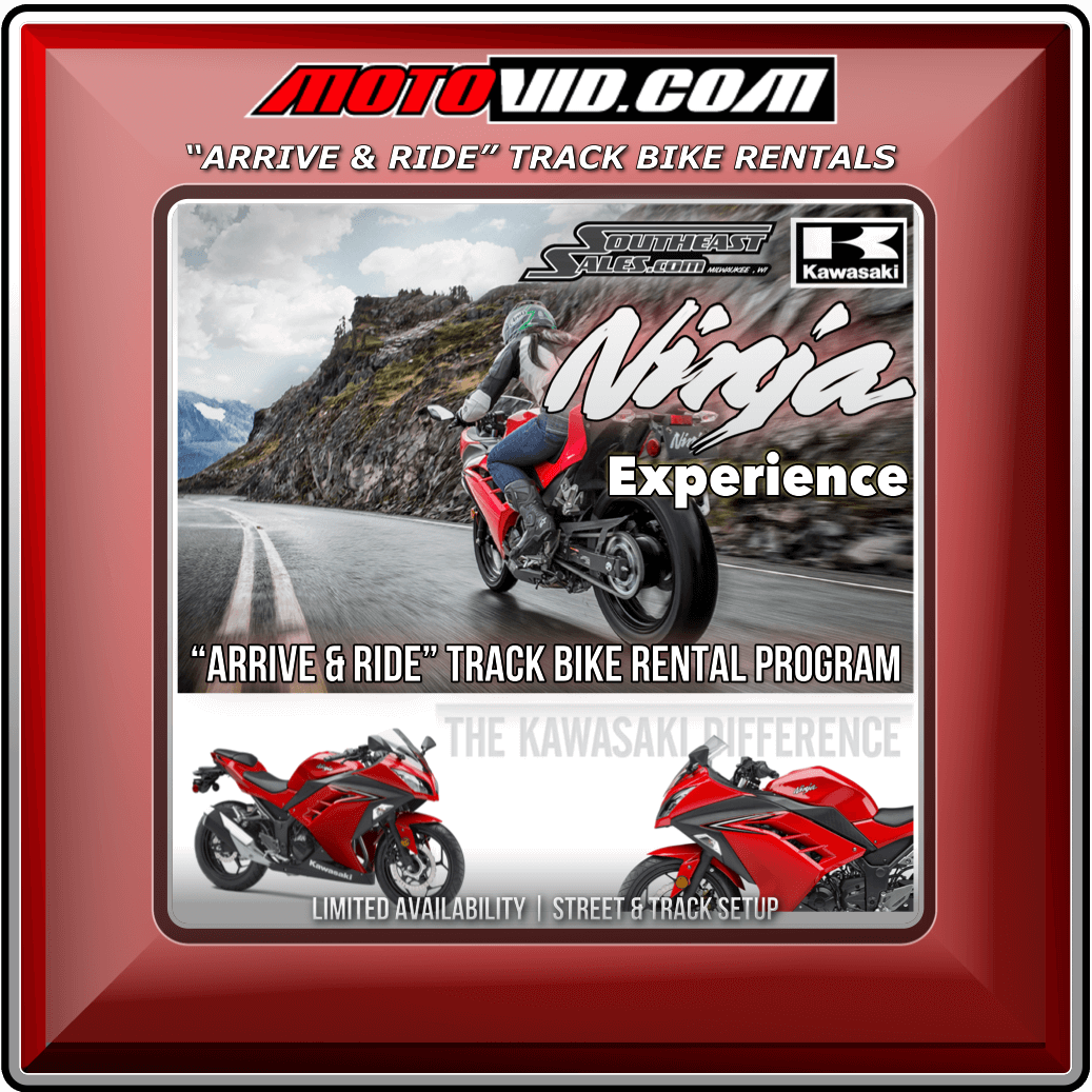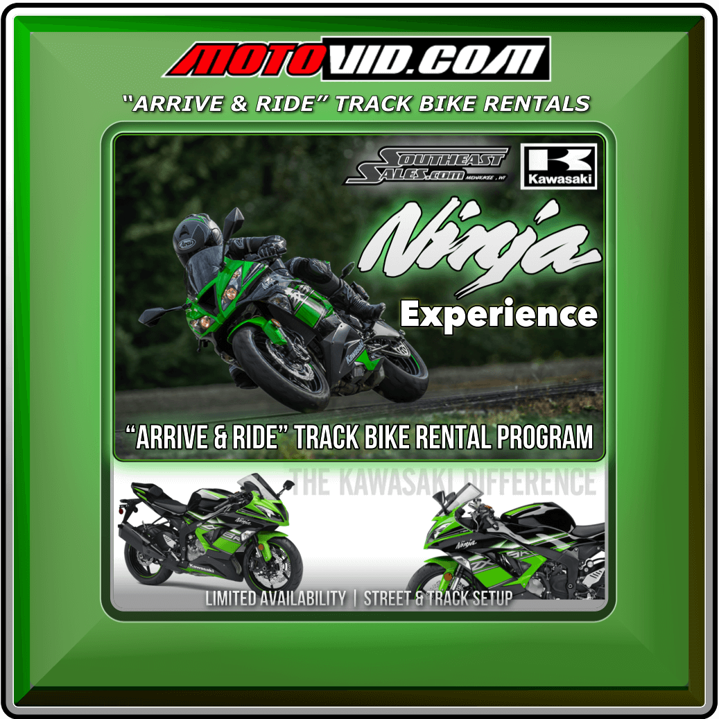 The Motovid.com Ninja Experience brought to you by Southeast Sales Kawasaki takes the track day riding experience to the next level with track bike rental options and packages based on the Kawasaki Ninja ZX platform.